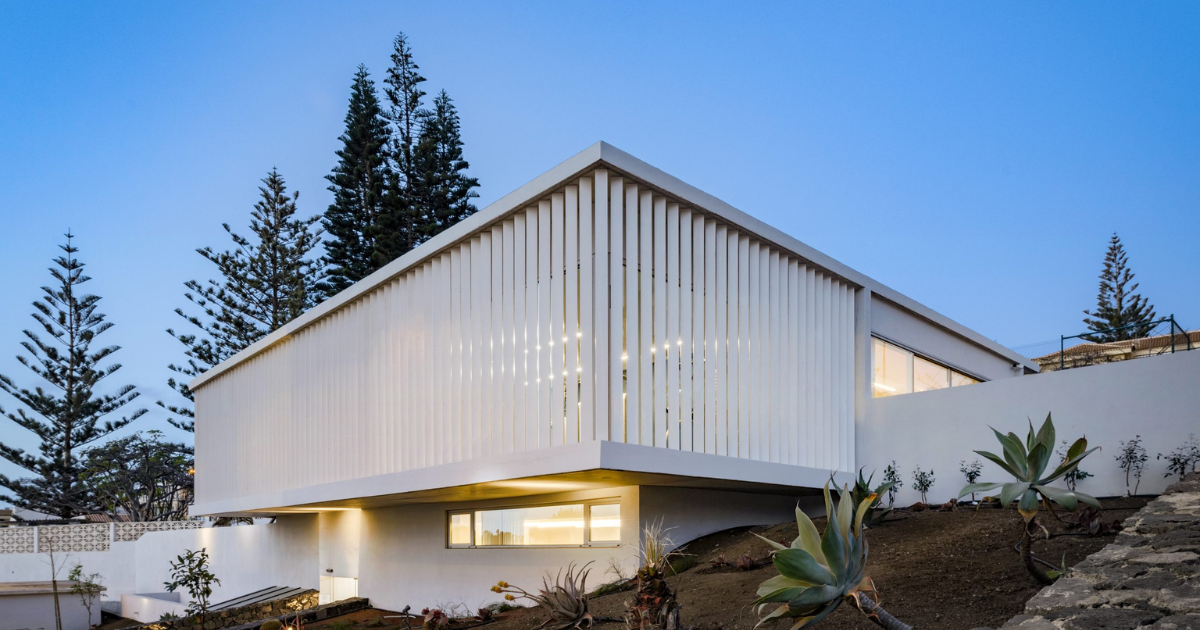 En consecuencia, la decisión de “suspender” el edificio en un solo cuerpo, extremadamente limpio, que se inspira en un generoso jardín existente en la parcela y que se ajusta a la valoración de sus condiciones excepcionales, resultó elemental. El edificio está revestido de lamas verticales y se configura así como un elemento natural de cierta abstracción formal que favorece la intimidad y la protección de los fuertes vientos y del sol.