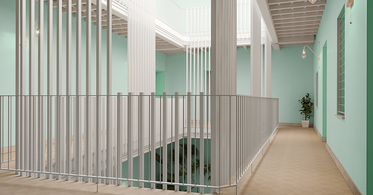 De esta forma conseguimos privacidad dentro de la galería, evitando miradas indiscretas, sin por ello entorpecer el paso de la luz. Otra de las alternativas que hemos barajado es el empleo de una carpintería de madera, o cierro, al estilo de las casas tradicionales del Casco Histórico de Cádiz. De esta manera recuperamos el sabor de lo añejo, al mismo tiempo que conseguimos aclimatar las galerías como espacios intermedios de circulación, ni completamente interiores, pero tampoco exteriores.