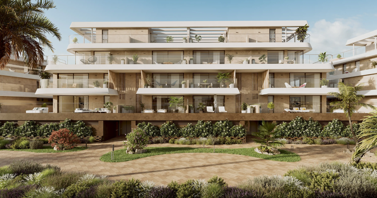 El conjunto, compuesto por 150 viviendas, se organiza mediante una distribución orgánica de bloques que aporta una imagen contemporánea y dinámica. Las formas sinuosas dialogan con el paisajismo, integrando los volúmenes edificados con la topografía y difuminando el límite entre arquitectura y naturaleza.